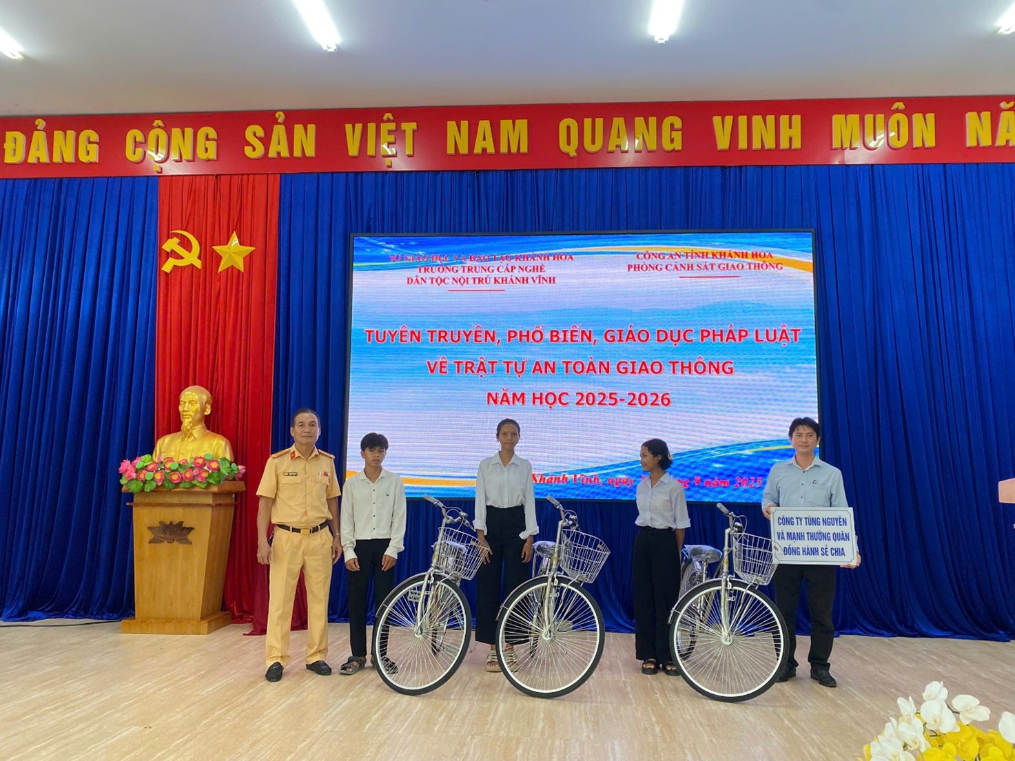 Sáng ngày 30/09/2025, Phòng Cảnh sát giao thông Công an tỉnh Khánh Hoà phối hợp Trường Trung cấp nghề Dân tộc nội trú Khánh Vĩnh tổ chức buổi tuyên truyền, phổ biến, giáo dục pháp luật về trật tự an toàn giao thông và hướng dẫn kỹ năng lái xe an toàn cho 395 học sinh và 22 giáo viên.