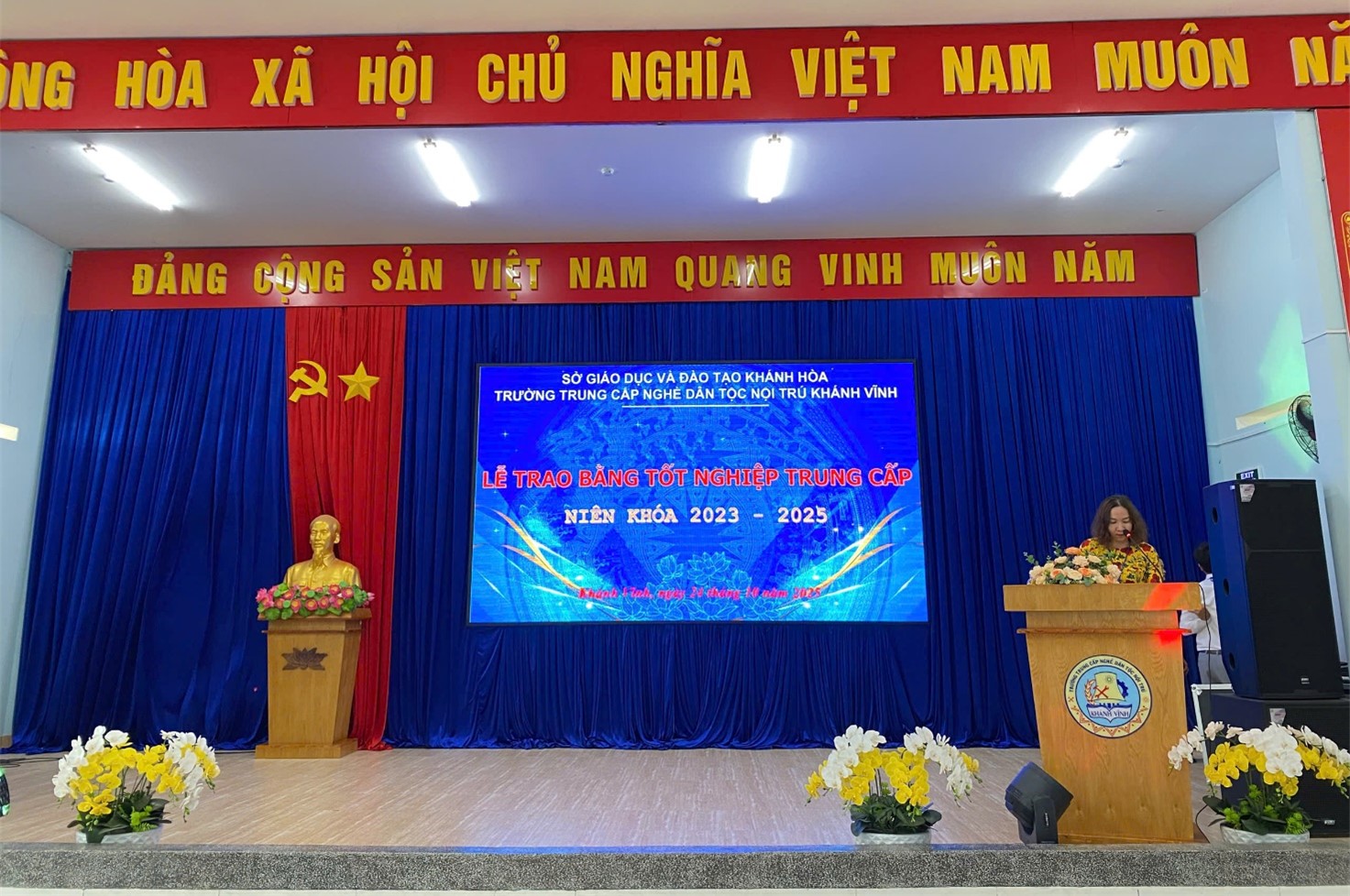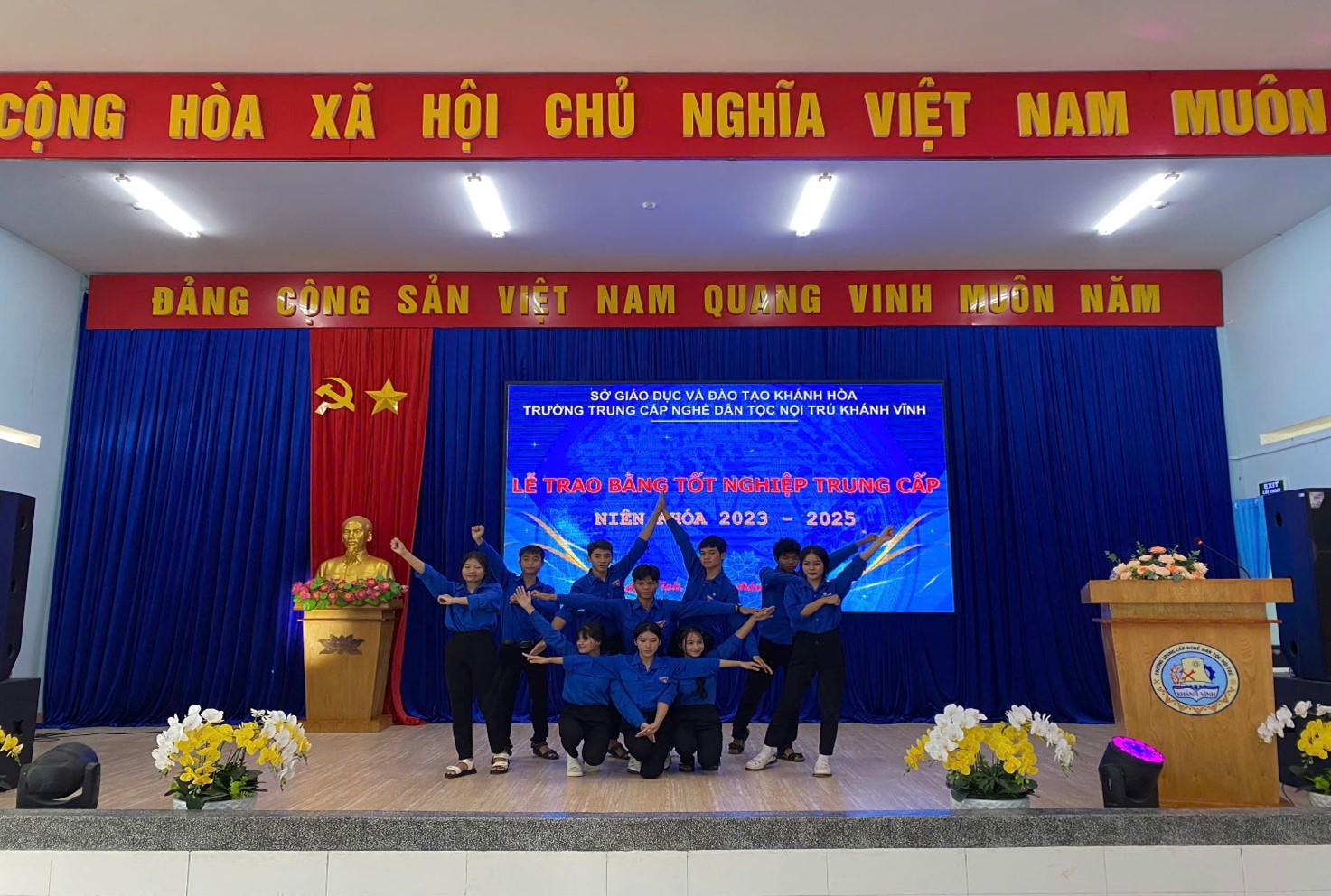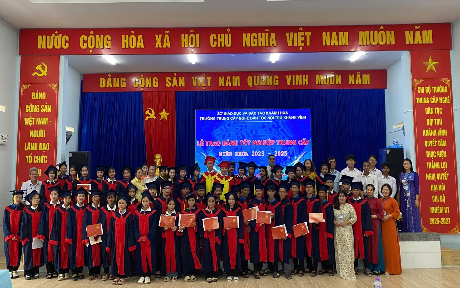 Sáng ngày 24/10/2025, Trường Trung cấp nghề Dân tộc nội trú Khánh Vĩnh đã long trọng tổ chức lễ trao bằng tốt nghiệp cho 64 học sinh. Buổi lễ diễn ra trong không khí hân hoan và tự hào, đánh dấu một bước ngoặt quan trọng trong sự nghiệp của các học sinh, đồng thời là sự kiện đầy ý nghĩa đối với nhà trường.