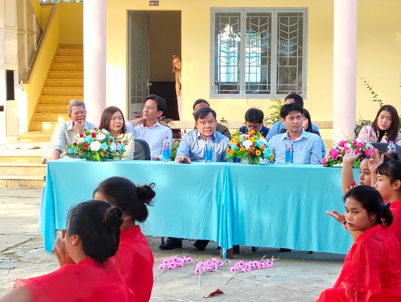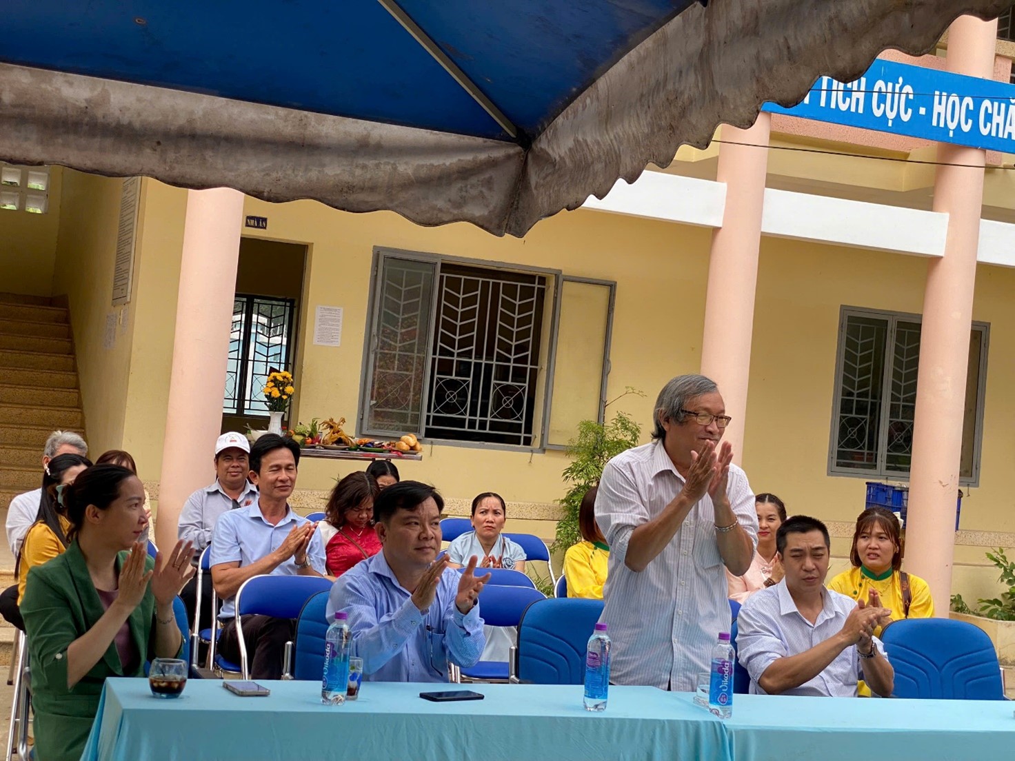 Về tham dự chương trình có đồng chí Kiều Xuân Khiêm - Bí thư chi bộ, Hiệu trưởng nhà trường; quý mạnh thường quân trong và ngoài nhà trường.