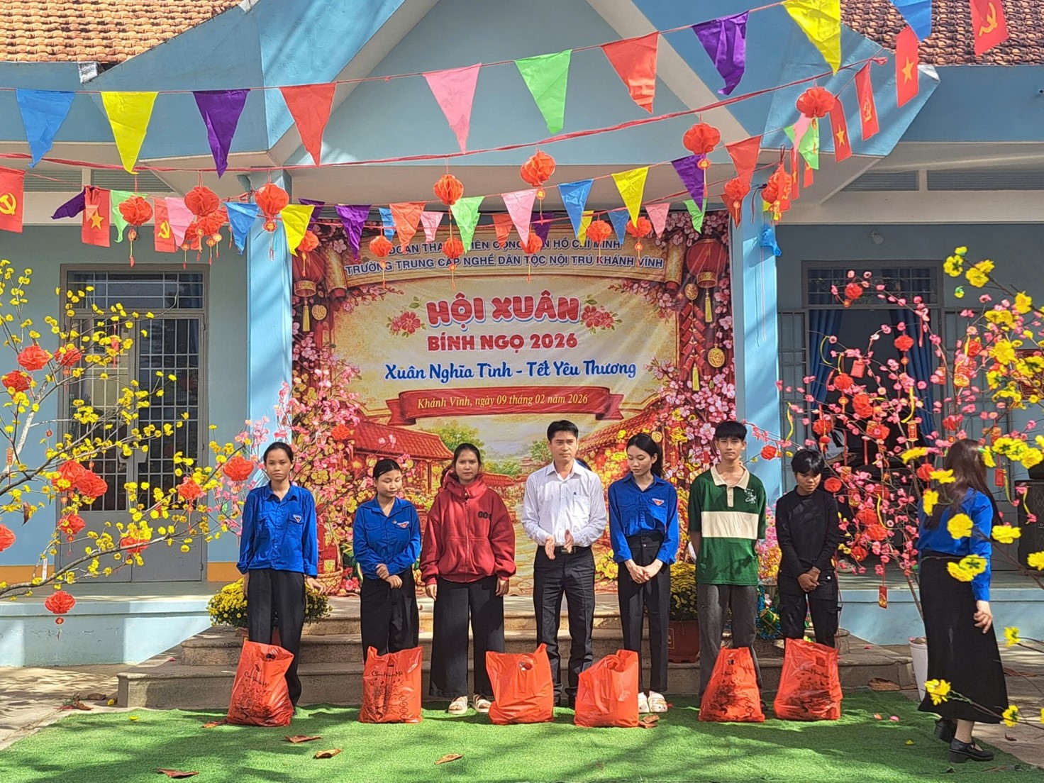 Sáng ngày 09/02/2026, nhằm tạo không khí thi đua sôi nổi Mừng Đảng - Mừng Xuân Bính Ngọ 2026, Đoàn Trường Trung cấp nghề Dân tộc nội trú Khánh Vĩnh tổ chức Hội Xuân Bính Ngọ năm 2026 với Chủ đề "Xuân nghĩa tình - Tết trọn vẹn".