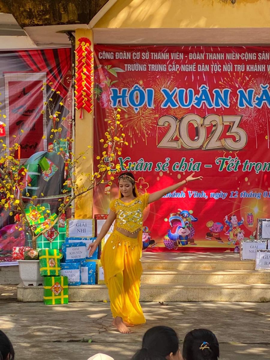 Nhằm tạo không khí thi đua sôi nổi thiết thực chào mừng thành công Đại hội Đoàn TNCS Hồ Chí Minh toàn quốc lần thứ XII, nhiệm kỳ 2022-2027 và Mừng Đảng - Mừng Xuân Quý Mão 2023, ngày 12/01/2023 tại Trường Trung cấp nghề Dân tộc nội trú Khánh Vĩnh, Đoàn thanh niên phối hợp với Công đoàn nhà trường đã tổ chức chương trình "Hội Xuân năm 2023". Về tham dự chương trình có đồng chí Kiều Xuân Khiêm - Bí thư chi bộ, Hiệu trưởng nhà trường; quý mạnh thường quân trong và ngoài nhà trường. Ngoài ra, về tham dự chương trình còn có cán bộ, công nhân viên chức nhà trường và hơn 180 ĐVNT cùng về tham dự.
