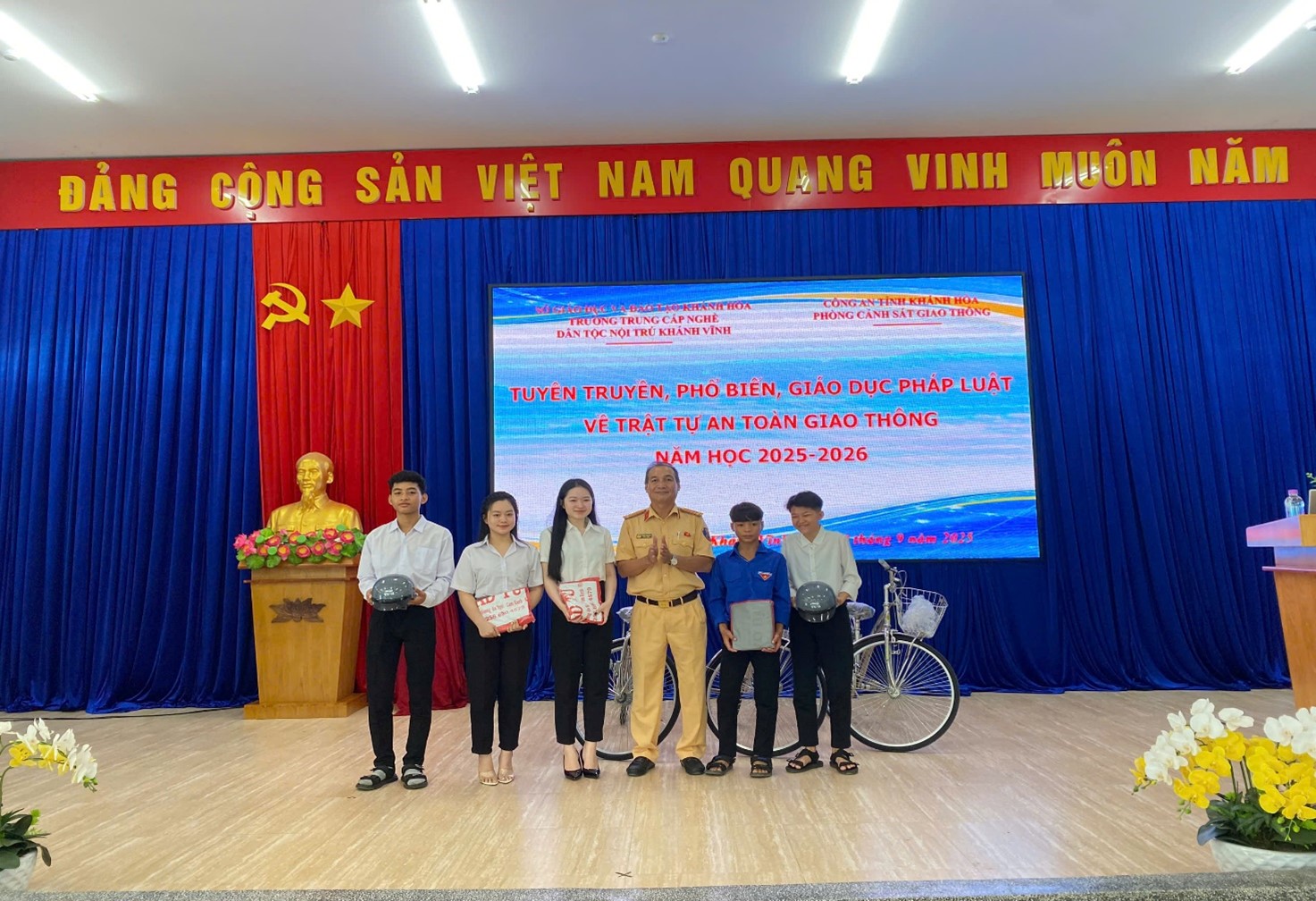 Sáng ngày 30/09/2025, Phòng Cảnh sát giao thông Công an tỉnh Khánh Hoà phối hợp Trường Trung cấp nghề Dân tộc nội trú Khánh Vĩnh tổ chức buổi tuyên truyền, phổ biến, giáo dục pháp luật về trật tự an toàn giao thông và hướng dẫn kỹ năng lái xe an toàn cho 395 học sinh và 22 giáo viên.